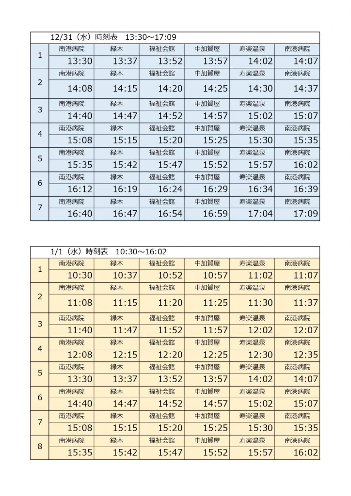 下記の通り、年末年始期間中の巡回バス運行スケジュールをお知らせいたします。