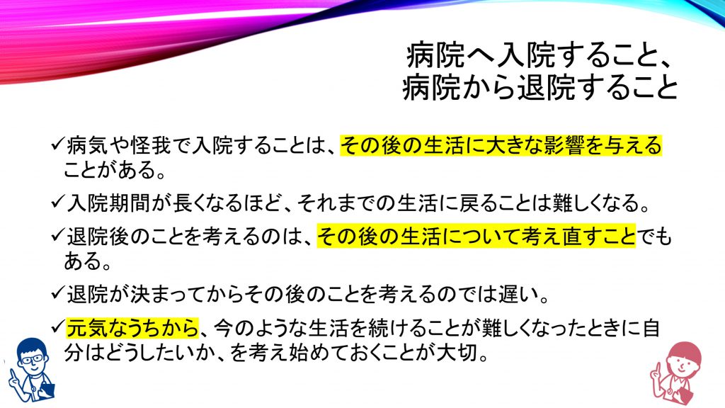 「入院しても安心して地域に戻るために ~入院時から始まる退院支援~」