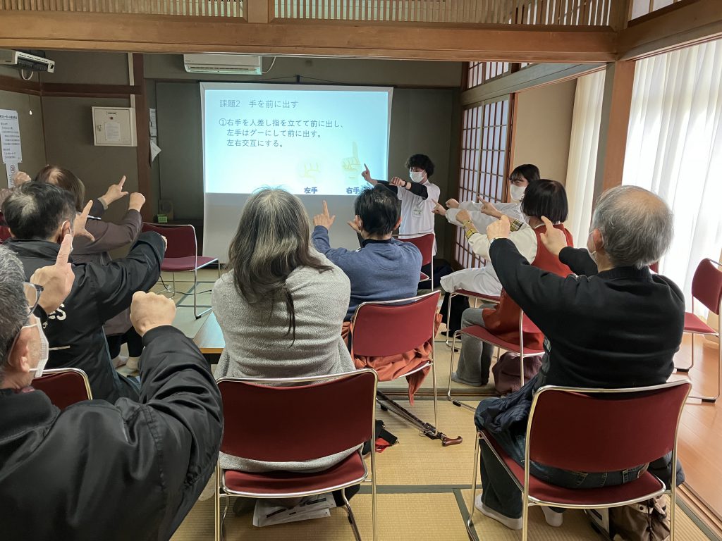 理学療法士と一緒に、認知機能の維持・向上を目的とした運動 「コグニサイズ」 を体験。