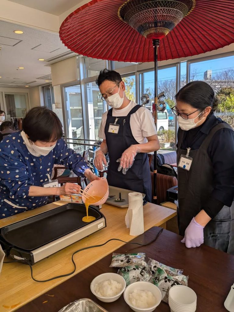 今回の参加者は実に多彩で、施設に入所されている方とそのご家族、掲示板をご覧になり「料理をしてみたい」と神戸からお越しくださった会社員の方、地域包括支援センターのスタッフの皆さまなど、世代や立場を超えた方々にご参加いただきました。